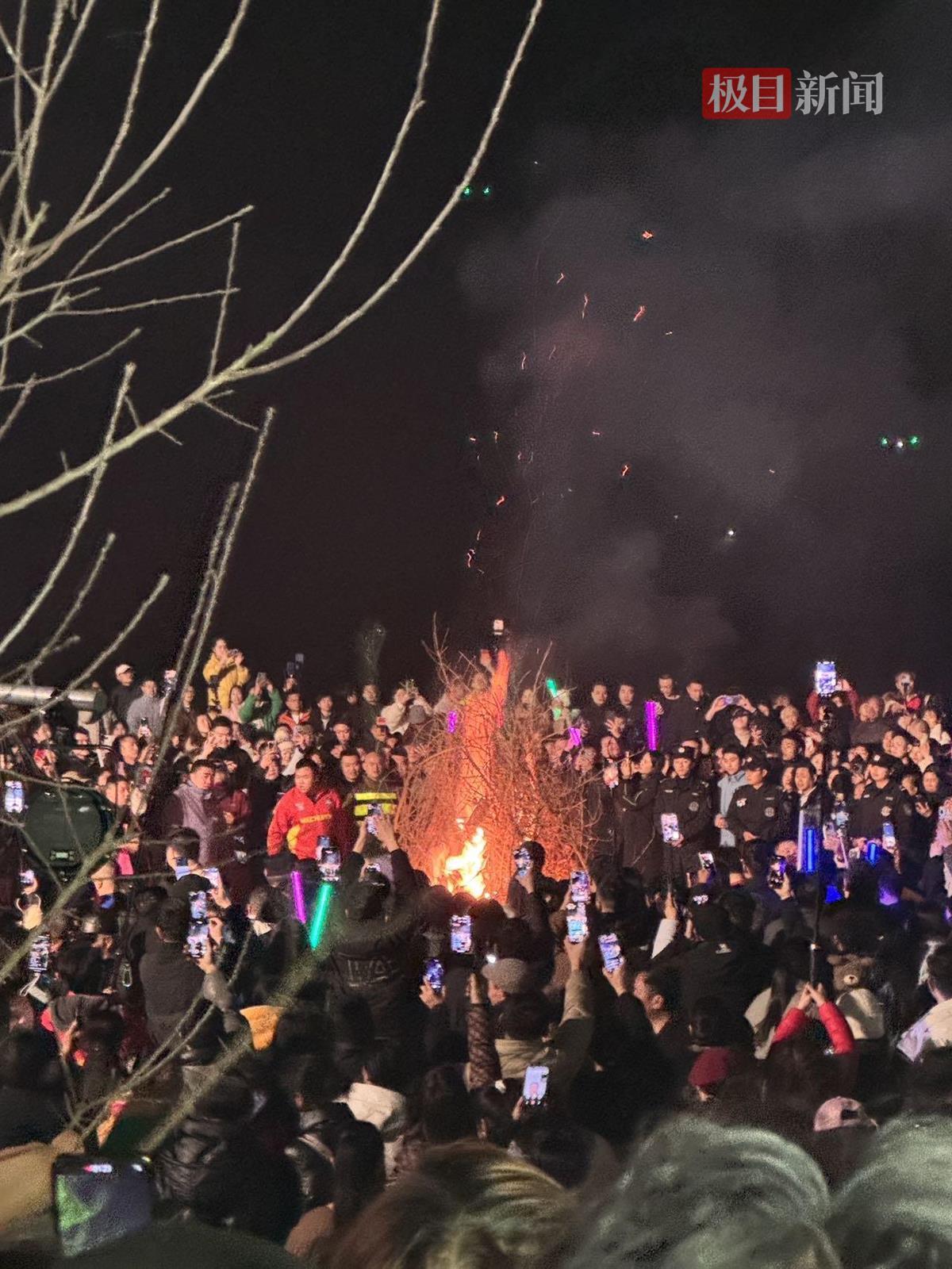 1月12日晚,农田里燃起了篝火(极目新闻记者 邓波 摄)