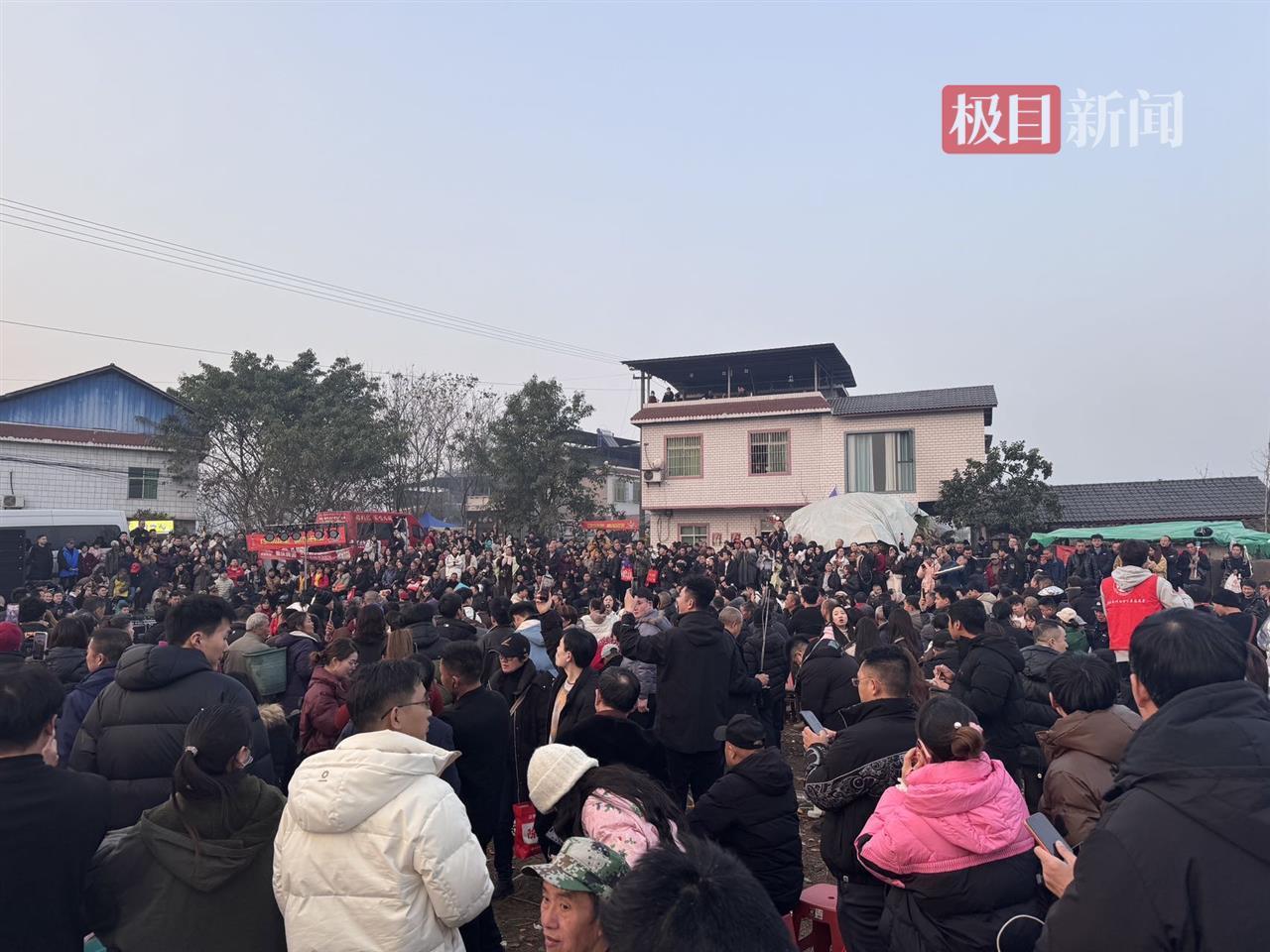 1月11日,陆续有网友赶来。合川区文旅部门紧急协调了街道政府各部门和警方的力量,到现场维持秩序、疏导车流。人流量在12日达到顶峰,根据通信运营商的统计,最多时同时在场有3000人左右,两天内共有上万人赶到村里。