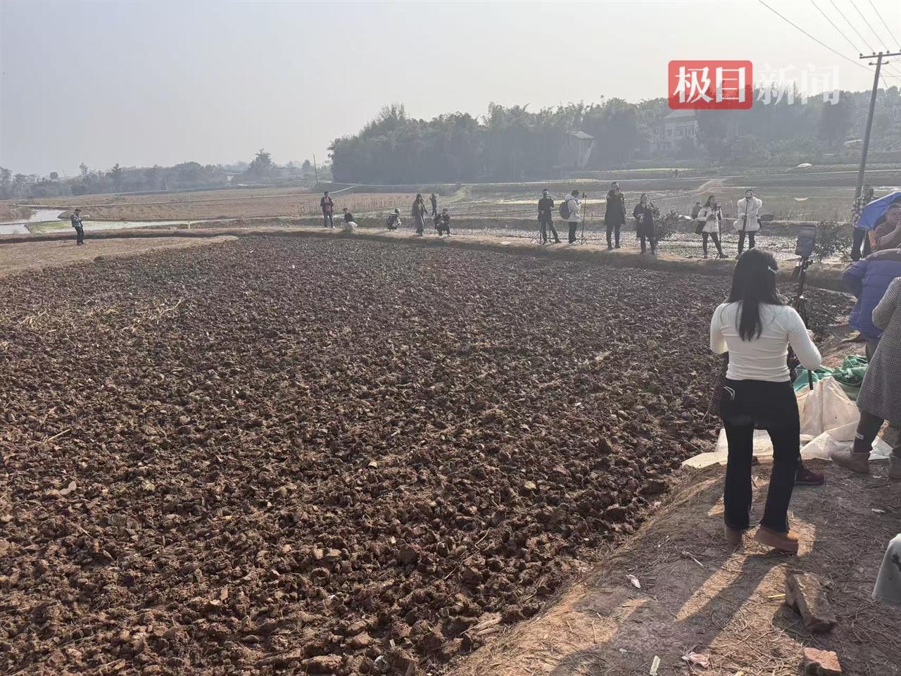 1月13日,田埂上的主播们(极目新闻记者 邓波 摄)
